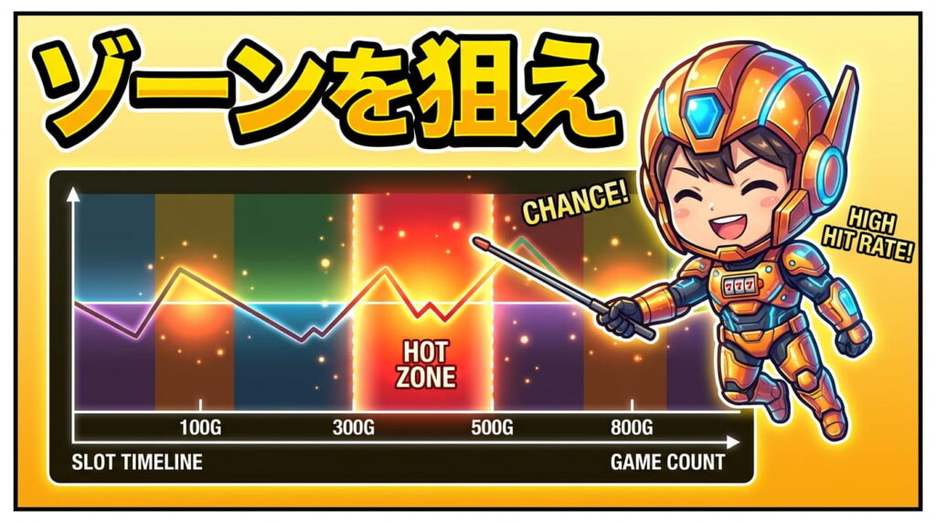 ゾーンとは、当選しやすいゲーム数帯のことを指します。